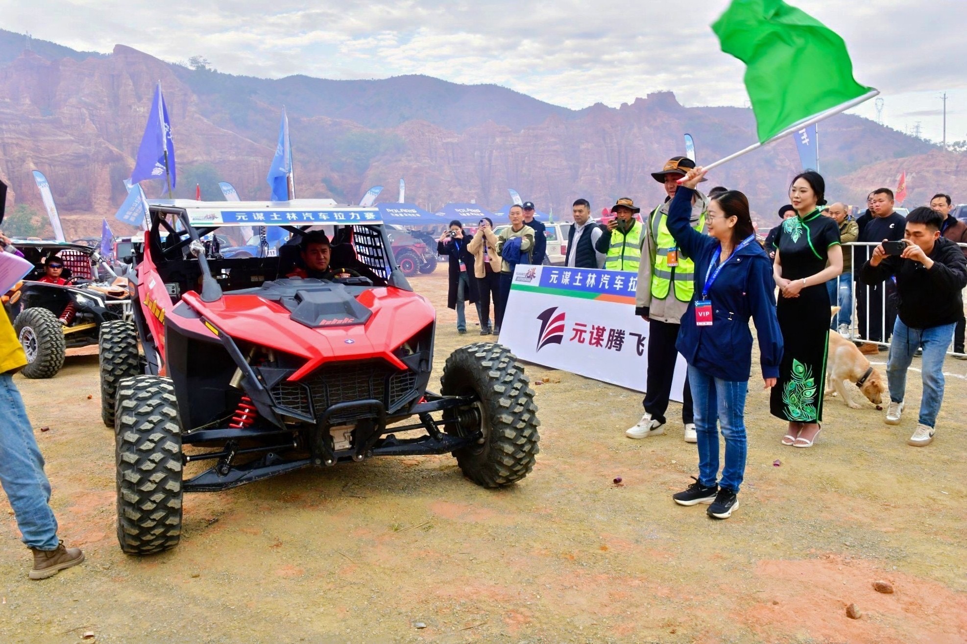 当日上午,腾飞汽车运动营地内现场彩旗飘扬,人头攒动,热闹非凡。开幕式现场汇聚了赛事主办方、参赛车队、车手、媒体记者以及热情的当地民众,共同见证这一激动人心的时刻。元谋县人民政府副县长刘亚梅出席仪式并为参赛选手挥旗发车。