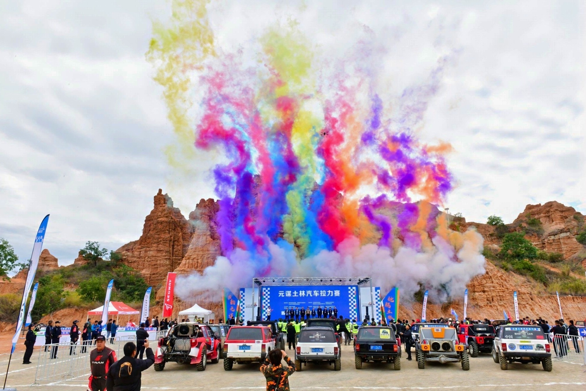 中午时分,本届赛事排位赛正式拉开序幕,车手们需要按照规则规定路线完成比赛,不仅将体验到场地中的各类障碍,而且深入土林的赛段也充满了刺激。“大场地、小拉力”模式的创新赛制从当日排位赛便开始显现独特的魅力。