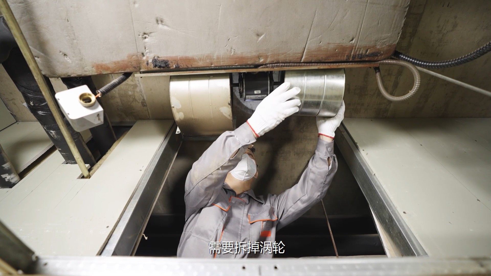 传统风机盘管的清洗,需要拆掉涡轮,对进风口的换热器进行局部清洗。再将涡轮冲洗后,装回风机盘管。仍然无法做到彻底清洗,甚至大部分风机盘管内部无法进行清洗。