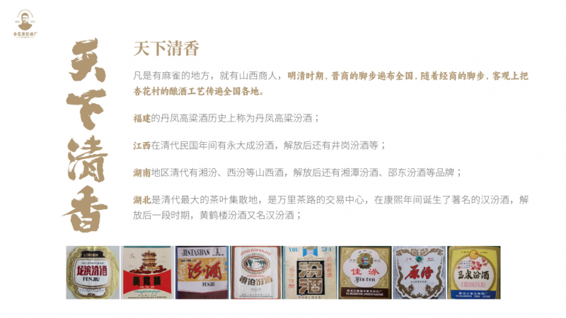 杏花村产区的自然环境和人文因素对清香型白酒的品质有着决定性影响。杏花原浆酒厂拒绝“独善其身”,而是以“核心产区第二品牌”的站位,推动杏花村从地理标识升级为价值共同体。通过“一省一品”区域名酒复兴计划,激活“湘汾”、“汉汾”等历史品牌;借力晋商“天下清香”的文化符号,将产区影响力辐射全国。