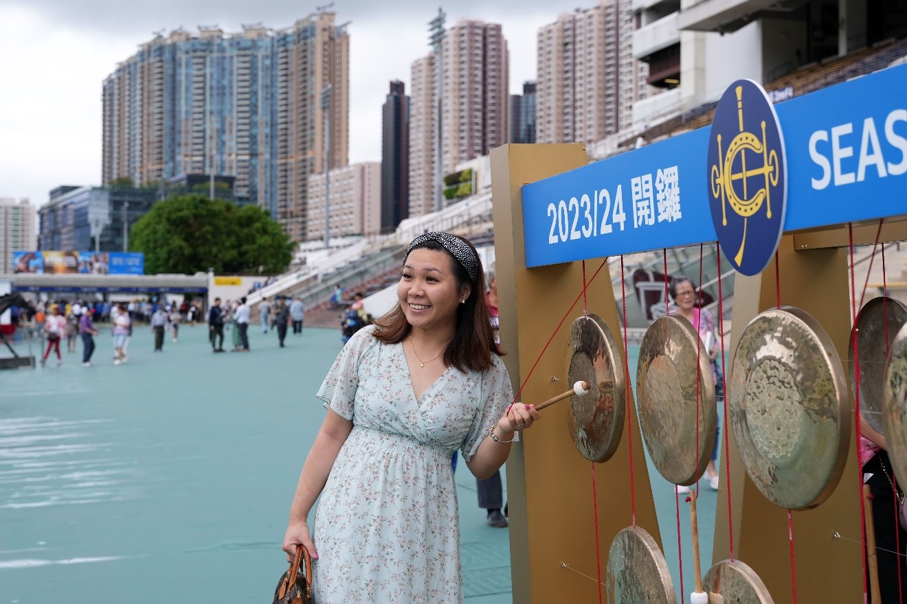 开锣日当天的沙田马场特设寓意好运的铜锣阵,让马迷与游客敲出好运。