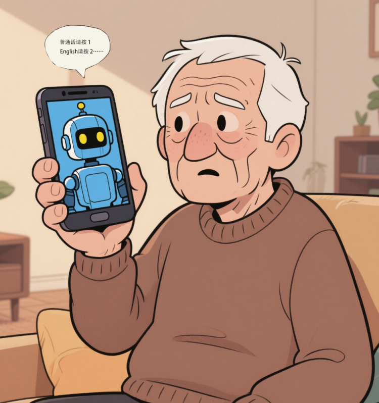 调查发现,若老年人试图突破智能客服的“防线”转接人工服务,往往要经历长达数十分钟的语音导航“迷宫”,甚至在排队等待中耗尽耐心。尤以银行、电信及各种应用型App等消费领域的智能客服,给老年人造成的困扰最大。