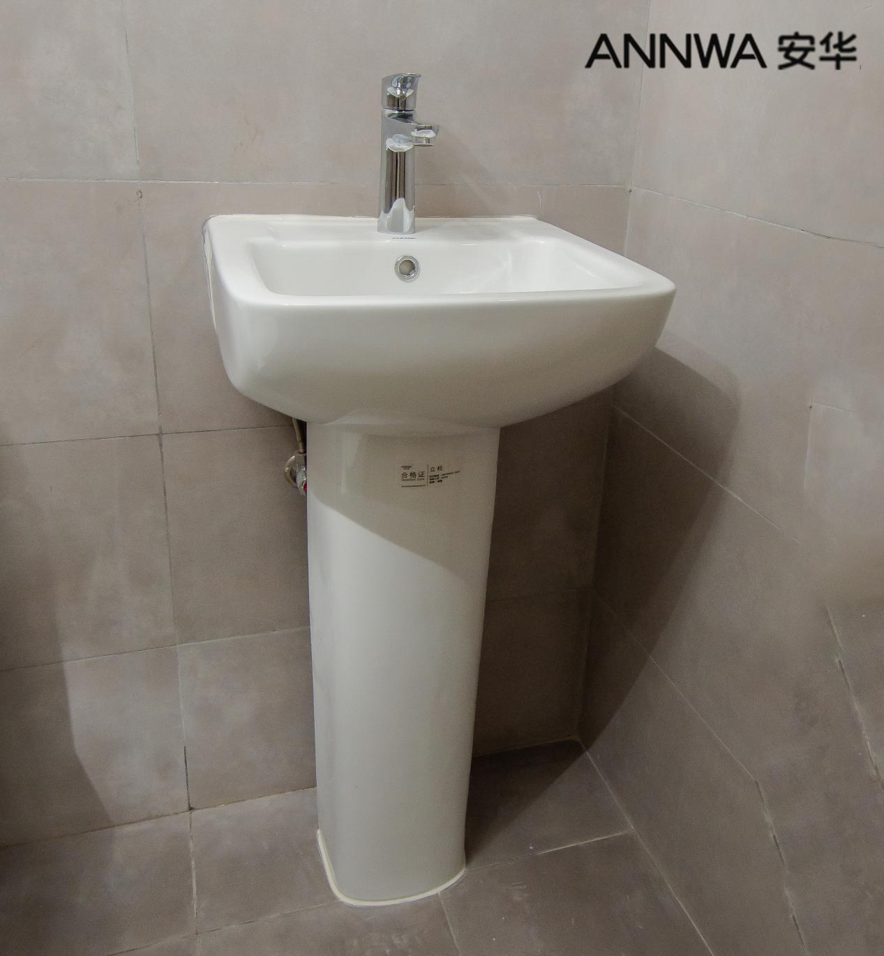 选用安华优质立柱盆,高温烧制一体成型,瓷质细腻,微波抗菌釉面光洁,充分保证了瓷体的抗污性和整洁性,守护用户的健康。