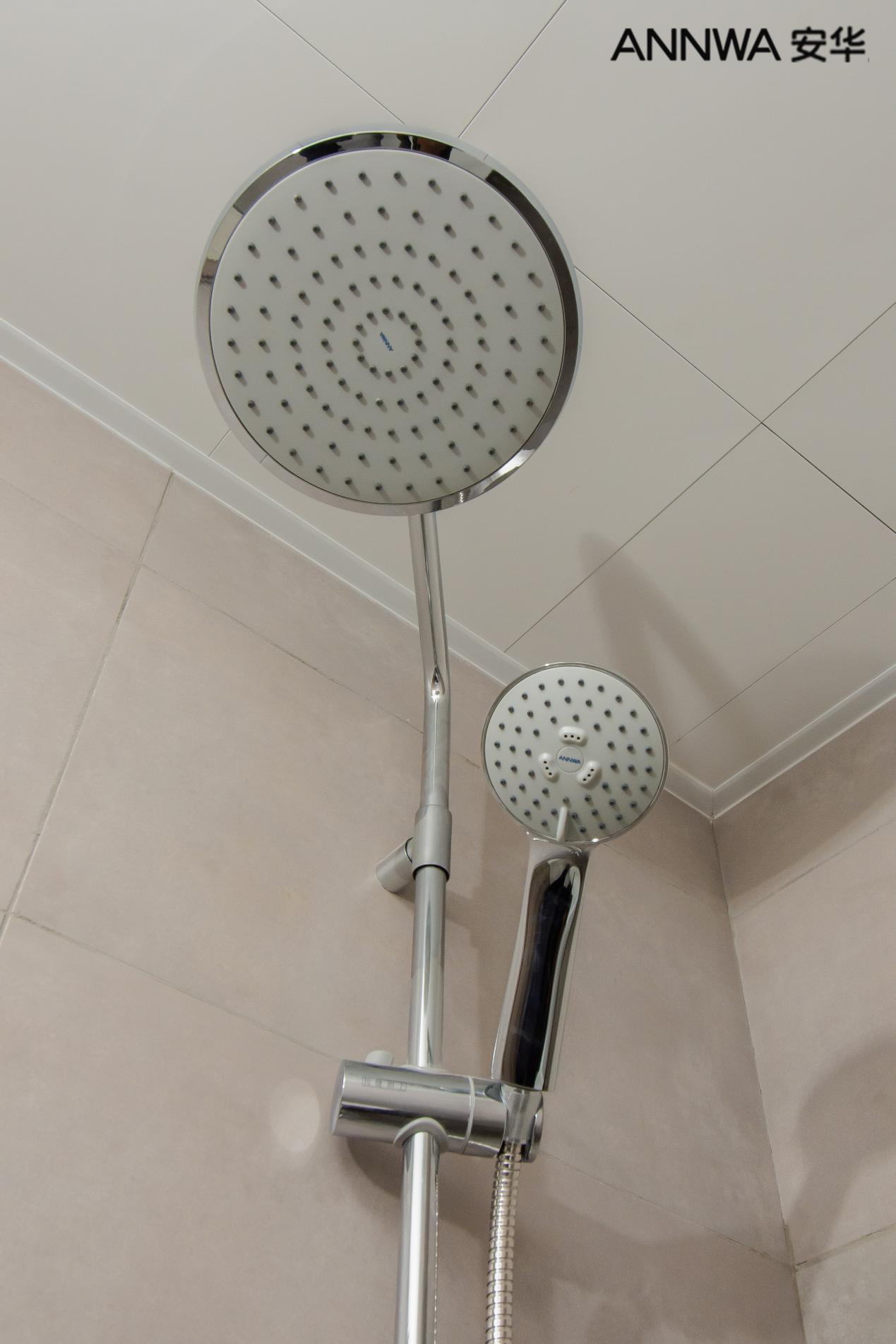 在沐浴空间也是为用户带来舒适享受的体验,采用安华多功能淋浴花洒,低铅精铜,健康环保。拥有优质阀芯,出水恒定,用户无需等待或反复调节。