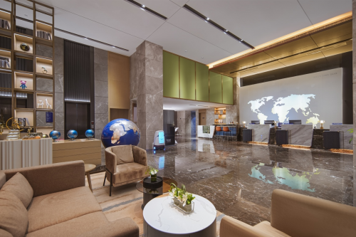 独具特色的“享睡港湾”升级了客房内的睡卧区域体验,通过灯塔外观的床头灯和世界地图背景墙营造环抱式睡眠环境,为宾客打造旅途中安心休憩的舒适“港湾”。房间里的蓝色电视背板隐藏着城市探索地图,呈现在地城市的交通线路,并标识出当地地标,为旅客探索城市提供便利。客房内设置语音指令、魔方感应和传统模式等多种客控方式,以满足当下不同人群对智能设备的使用习惯。