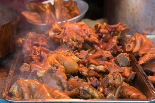 “状元蹄”是青岩古镇的一道传统美食,红亮的颜色,看上去就非常有食欲,吃在嘴里,软糯香甜,如果再配上酸辣的蘸汁,味道真的妙不可言,让人回味无穷。