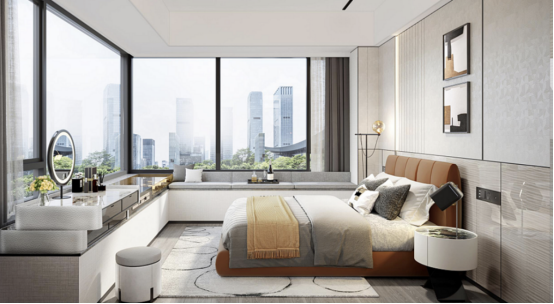 包括室内的主卧飘窗,还能实现270°一线澳门海景的极致视野