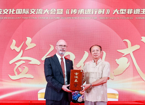 在交流会上,来自阿尔巴尼亚驻华大使塞利姆•贝洛尔塔亚先生与中国非物质文化遗产浊酒•古液春代表刘淦芳先生进行签署收藏合约。本次收藏签约,不仅在渠道上拓展了非遗文化的传播路径,也促使非遗传承实现规模经济和商业变现价值,继而扩大其影响力。