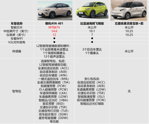 五菱缤果和海鸥屏幕不如哪吒AYA大,智舱芯片也未公布,智驾体验远远不如哪吒AYA丰富,缤果甚至都没有智驾包,要说用吧倒也够用,但毕竟咱们这是双十一专题,主打看谁更超值,这两款车型和哪吒AYA相比,在智能体验方面几乎没有优势。