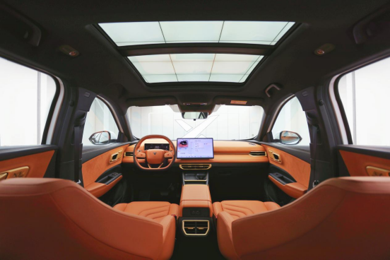 哪吒X的内饰采用270°环抱式布局,一进车门,即可感受到如同在家的安全、温馨感。同时整车皮质包覆面积达到80%,高频接触区域100%应用皮质,触手可及,均为柔软质感。再加上兼具舒适性和透气性的一体式舒享座椅,短途舒适,长途不累,让开车像在懒人沙发上一样放松。