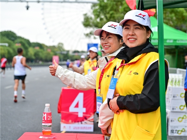 赛道沿途设置了多个补给站,同时赛事招募了众多跑团社会志愿者为全国各地的跑友服务,其中赛事补给有:香蕉、小面包、圣女果、能量胶、盐丸、蜜桔等。考虑到天气低温,特别在全马和半马完赛以后还为大家准备了姜汤热饮服务以及增设保温毯。也为跑友创造了更好的参赛体验,提供了更安全的赛事保障。