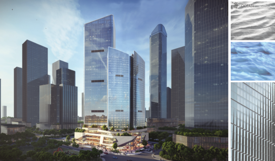 项目地处金融岛海岸线俱佳观海位,在总平面整体规划策略上,充分挖掘地块的价值,设计将两栋塔楼进行巧妙定位及造型推敲: