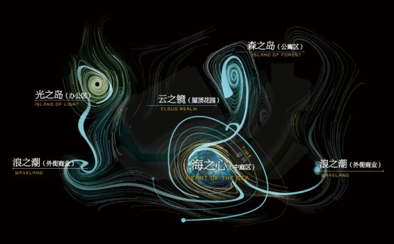 以横琴滨海里为定位,整体提取海洋元素,以“海洋之心”为主题,巧妙地结合场地特质,将建筑、室内一体化考虑设计,将艺术、人文相融合,通过非标业态、立体花园、Mall+街特色空间,打造滨海湾区金融岛城市核心的约1.5万方立体高端商业景观空间。