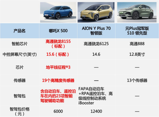 如果不太了解汽车的人,对哪吒X的智能体验没有什么概念,那我们不妨与同级产品对比。例如售价相近的AION Y Plus,屏幕尺寸方面,是没有哪吒X大的14.6英寸屏幕;芯片方面,是不如8155运算能力的骁龙6125芯片;智能驾驶方面,AION Y Plus的70智领版和科技版可选装全场景一键遥控泊车等三项功能,选配价格为12400元,直接是哪吒X智驾包的两倍,不管是小白还是老司机,上来先被价格吓一跳,属于“食之太贵,弃之可惜”,让人非常纠结。