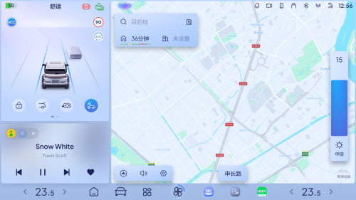 为避免用户开车时,低头操控音量、亮度,或关闭应用而分心,哪吒X上线了三种更适合驾驶场景的交互手势——左手双指上下滑动即可调节音量,右手双指上下滑动可调节屏幕亮度,三指迅速下滑则可关闭当前应用,无需低头分心触控,让驾驶更安全。