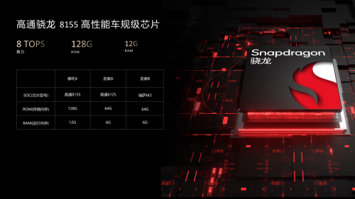 作为同级产品中的“新标杆”,哪吒X的智能配置堪称超配。全系标配高通骁龙8155车规级芯片,拥有8核高性能处理器,搭载NPU神经网络处理单元,AI算力达到8TOPS,智舱运行更安全、稳定。同时,哪吒X还全系标配15.6英寸同级超大屏幕,采用超薄设计,最窄处仅有6.7mm,屏占比达到90%,是同级产品中,屏占比最大、最薄的。