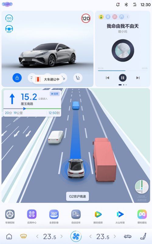 路遇大车接近也无需紧张,哪吒GT避让大车是一把好手,首先会在不压到车道线的前提下向远离大车的一侧轻微偏移,然后自主提升车速超车,最后回到车道中心继续以设定车速行驶,动作流畅如同老司机,直击用户求稳求安全的驾驶心理。