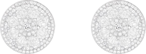 该主题作品另有一对耳环同样采用蕾丝造型设计,并且镶嵌了 662 颗圆钻。