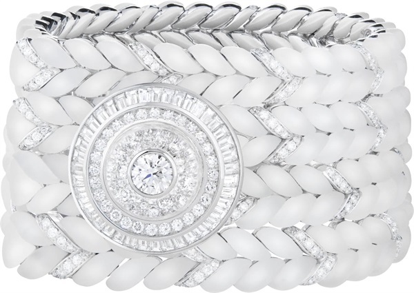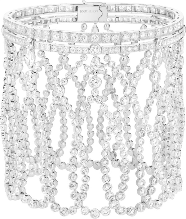 与盛典礼服固有的奢华风格不同,全新Histoire de Style, The Power of Couture高级珠宝系列专注于材质的一致性,即重点甄选水晶和钻石这两种材质,采用单色主题,既调和了传统金色装饰的巴洛克风格,又在视觉上流露出明亮耀眼的美感。创意总监Claire Choisne指出:“打造这个系列的难点在于如何运用硬朗的金质和宝石呈现织物般的特质。”得益于Boucheron宝诗龙能工巧匠们的精湛技艺,水晶和钻石幻化为数件高级珠宝佳作,恰如珍稀丝织品那般精致、柔美。