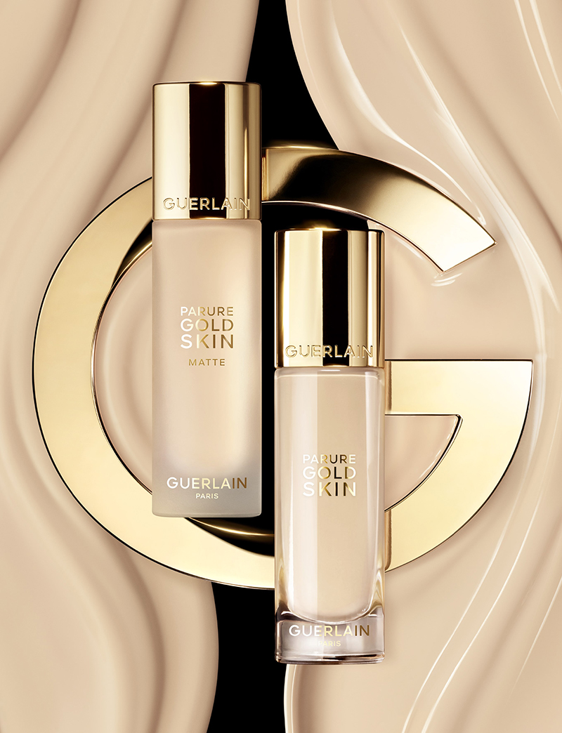 在涂抹娇兰金钻焕彩凝露后,再根据肤色挑选娇兰金钻修颜粉底液(光泽透亮)或娇兰金钻修颜粉底液(柔雾哑光)色号,可满足各种肤色需求:打造「金」致底妆。