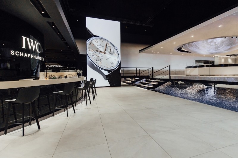 为了彰显葡萄牙系列独具一格的经典特色,IWC万国表在“钟表与奇迹”日内瓦高级钟表展上的展厅设计以现代主义建筑为灵感。整个展厅采用通透的开放式设计,其中一些元素与IWC万国表沙夫豪森制表中心的建筑设计一脉相承。丰富的水元素呼应了150多年前IWC万国表在莱茵河畔创立时的制表梦想。在一天中的不同时段,展厅分别呈现全新表款的四种全新色彩:地平线蓝、沙丘金、曜石黑和银月白,以此营造出别具一格的氛围,为参观者呈现无与伦比的独特体验。全新葡萄牙系列腕表作品陈列在一个大型圆形展柜中,展柜上方悬挂着一轮熠熠闪光的巨大银月,呼应IWC万国表的日历与月相显示。从缤纷色彩到象征莱茵河的流水再到银月当空,展厅的每一个元素都寓意着向永恒致敬。