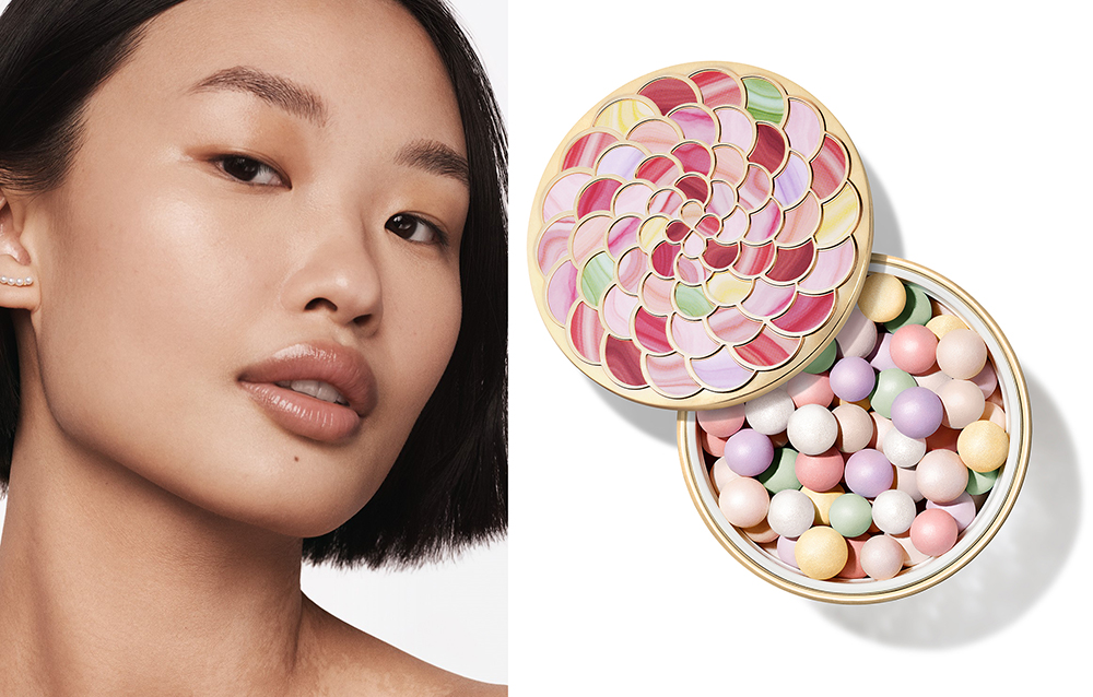 混合白色、玫瑰色和米色珍珠粉球,巧妙平衡冷暖色调,赋予亮白肌肤自然光泽与清透妆效。
