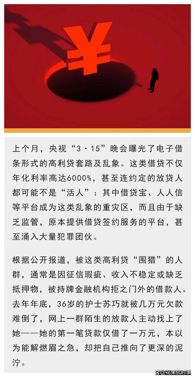 创业失败的借款人,被“放贷中介”围猎 落入高利贷陷阱!苏巧一步步陷入深渊的起点,只是三万块。那是去年11月29日,朋友来催债,这笔钱她为了周转已经借了一段时间,如今到了约定的还款期,对方急需用钱,她一下子拿不出,也不好意思再推脱。