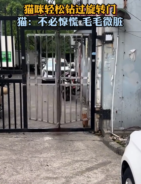 猫咪轻松钻过旋转门,猫:不必惊慌,毛毛微脏。