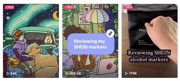 (外国美术博主多次测评SHEIN平台上的马克笔)