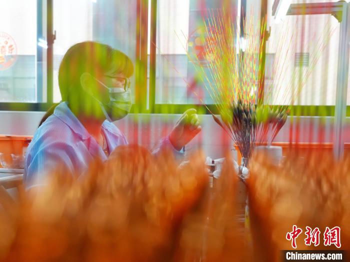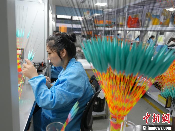 图为工人制作浮标。中新社记者 杨华峰 摄
