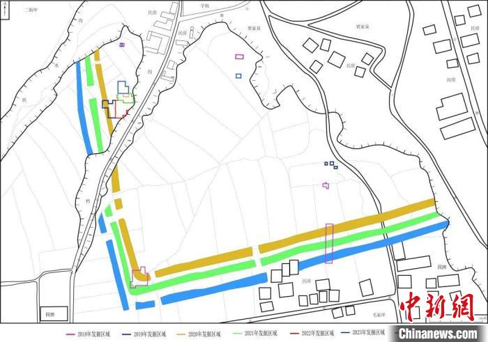 图为寺洼遗址历年发掘区及“围壕(沟)”分布图。(资料图)甘肃省文物考古研究所供图