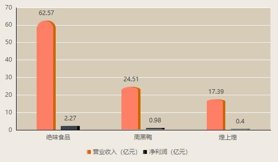 2024年,绝味食品实现营业收入约62.57亿元,同比下滑13.84%;归属于上市公司股东的净利润约2.27亿元,同比下滑34.04%。这是绝味食品上市以来最差的业绩表现。同样,煌上煌实现营业收入约17.39亿元,同比下滑9.44%;归属于上市公司股东的净利润约0.4亿元,同比下滑42.86%。周黑鸭实现营业收入约24.51亿元,同比下滑10.7%;年内溢利约0.98亿元,同比下滑15%。