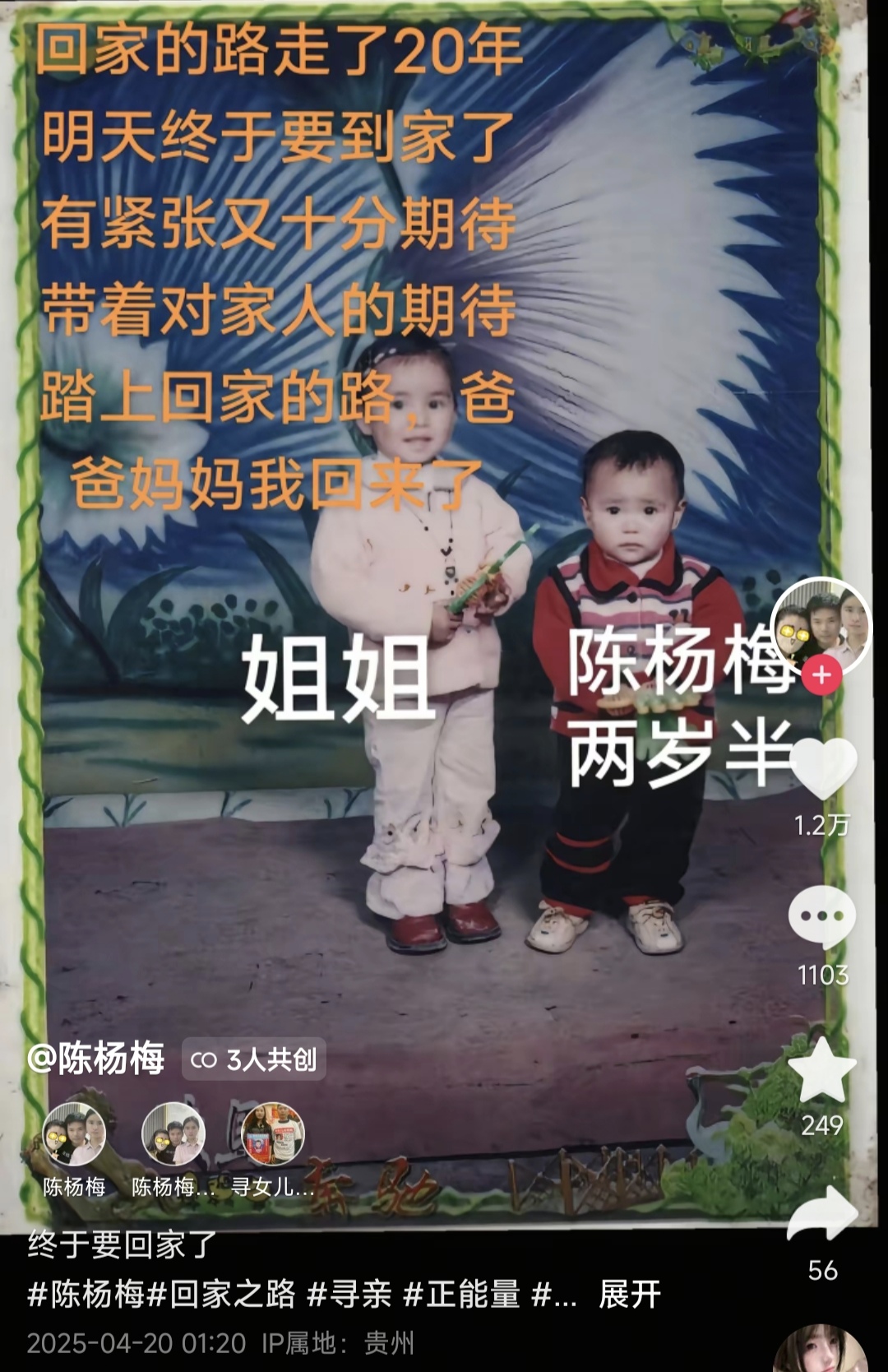 此外,大皖新闻记者注意到,陈杨梅在寻亲成功后,也立即注册了短视频账号,头像是自己和爸爸陈生梨以及姐姐的三人合照,但没有露脸。她发布了3条作品,一条是和爸爸打微信视频电话,另一条是自己和爸爸手握手,最后一条是今天凌晨发布。“回家的路走了(近)20年,紧张又十分期待,爸爸妈妈我回来了。”