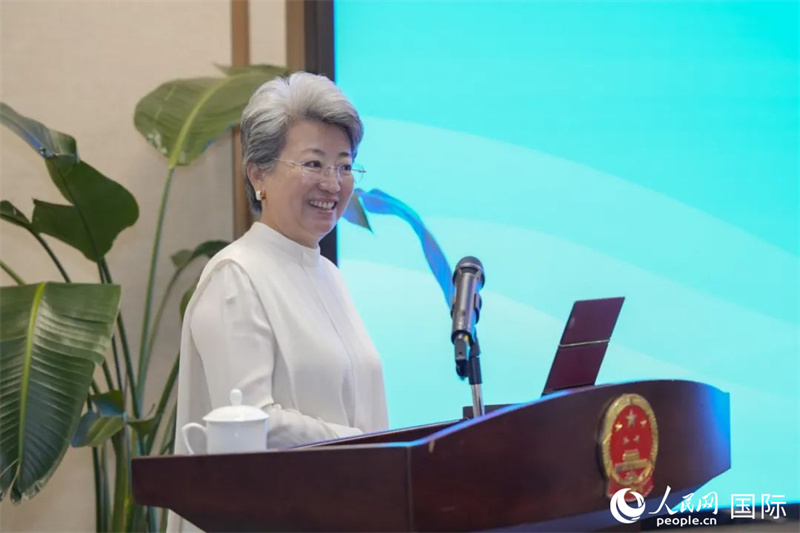 图为欧渤芊总领事在授课。人民网 塔里克·易卜拉欣摄