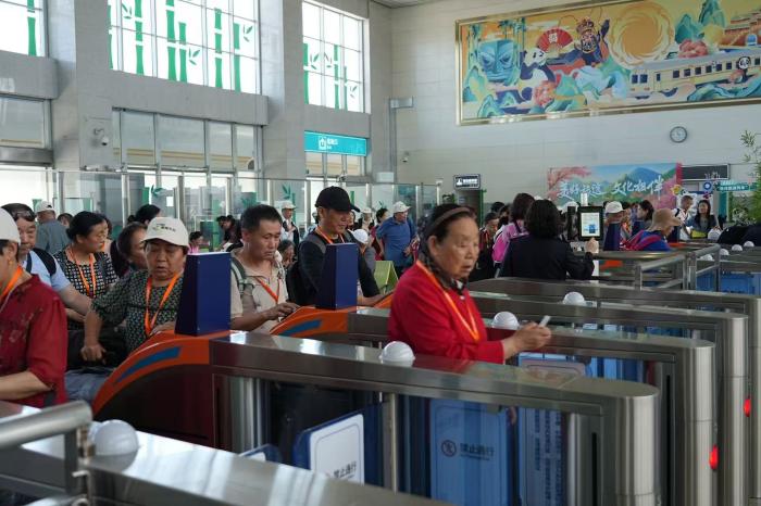 同时,为便利银发游客出游,国铁成都局从进站、候车、登乘车等环节提供重点服务。车站开启专用通道、候车室,方便银发旅客乘车;旅游专列上配备熊猫管家、医护人员以及丰富的餐食选择,确保银发游客在旅途中的舒适与安全。