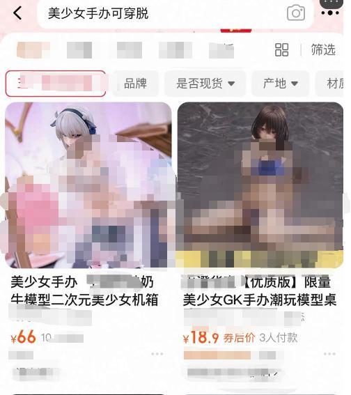 据报道,不少家长反映孩子身边所谓的“美少女”系列手办竟然是全裸的。2023年12月,央视《焦点访谈》揭露了生产销售黄色手办的产业链,这些手办造型为各种性爱姿势,接近“全裸”,或可拆卸、脱衣,并在直播平台和网购平台上售卖。这类手办频繁被媒体曝光,表明其在日常生活中并不少见,监管层面存在漏洞。