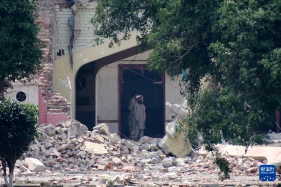 这是5月7日在巴基斯坦东部旁遮普省谢赫布拉地区穆里德盖镇拍摄的遭印度导弹破坏的建筑。新华社发(萨贾德摄)