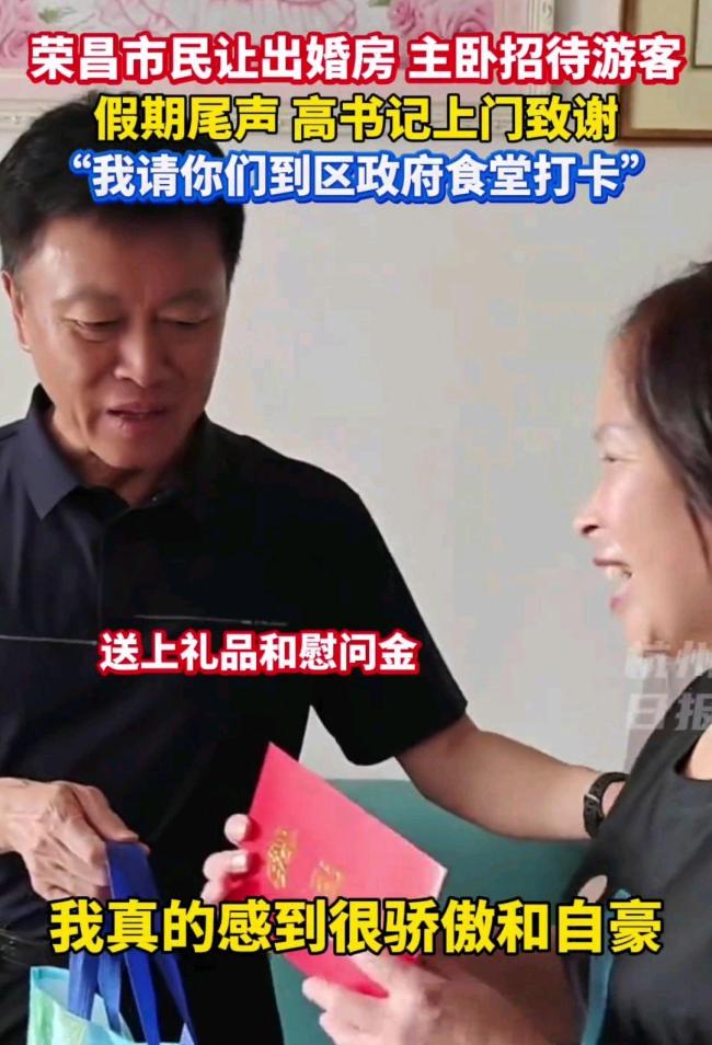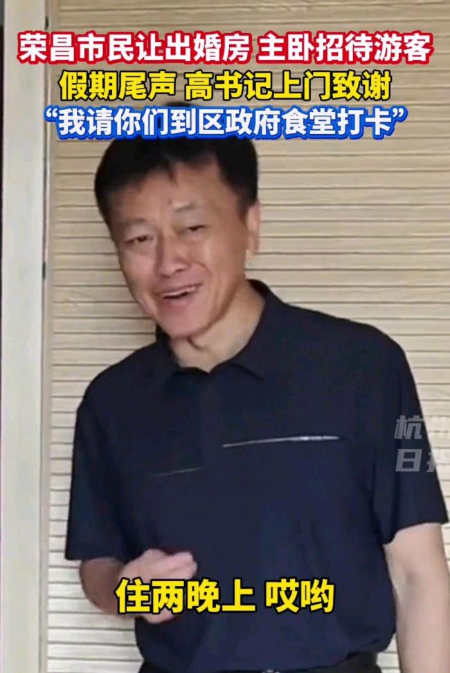 荣昌区委书记感谢百万游客 市民善举温暖人心!五一假期,重庆荣昌凭借特色美食和热情服务吸引了超过200万人次的游客。不少市民自发招待游客,展现了浓浓的人情味。5月5日,假期最后一天,荣昌区委书记高洪波走访慰问了部分市民,向他们表达诚挚感谢。