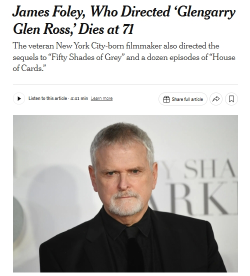 中新网5月9日电 据美国《纽约时报》9日报道,当地时间6日,美国导演詹姆斯·弗雷在位于洛杉矶的家中去世,享年71岁。