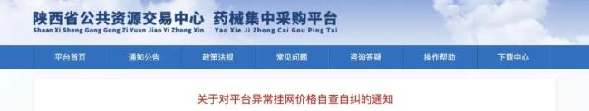 近日,陕西公共资源交易中心发布《关于对平台异常挂网价格自查自纠的通知》,剑指高价药。