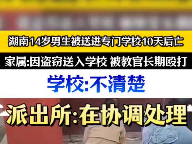 在矫正学校死亡的14岁少年 悲剧背后的监管裂痕。3月22日傍晚,株洲市天元区人民医院的走廊里,张梅颤抖的手掀开白色被单,14岁的儿子周希军蜷缩在冷硬的床板上。他的脸颊凹陷,肋骨根根分明,四肢布满青紫伤痕。这个因偷盗被送入“矫正学校”仅十天的少年,以极其惨烈的方式离开了世界。