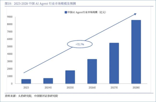 有了全球爆款+通用协议背书,通用Agent的市场无疑即将起飞。据相关调研显示,中国AI Agent行业市场规模2023至2028年的复合增长率有望达到72.7%,达到约8000亿元规模。对于创业者们来说,这是一个融资上市、实现财富自由的新风口;而之于互联网大厂们,则是不得不争夺的流量入口,承担着转化、赋能的重任。