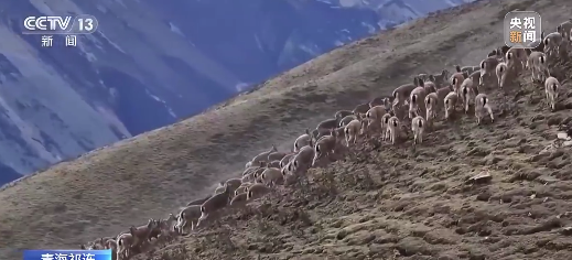 近日,在青海,近千只岩羊在山间草场、山脊沟壑之间穿梭觅食,场面壮观。岩羊是国家二级保护野生动物,其蹄部的特殊构造可攀爬70度以上的陡坡,被称为“岩壁上的精灵”。