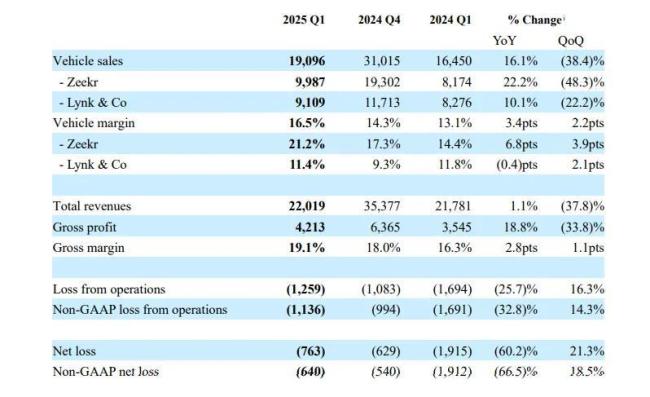 5月15日,吉利汽车(0175.HK)公布了2025年第一季度的财务数据。