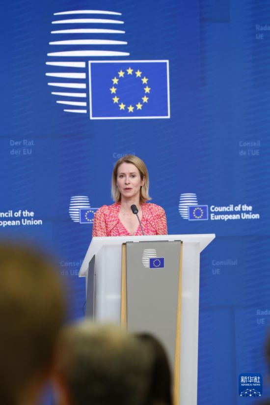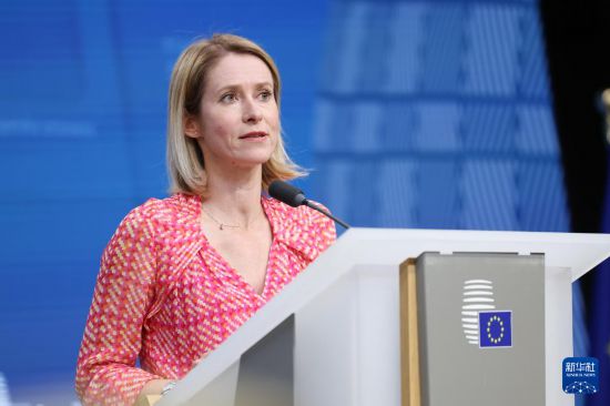 5月20日,在比利时布鲁塞尔,欧盟外交与安全政策高级代表卡拉斯在新闻发布会上讲话。新华社发(欧盟供图)