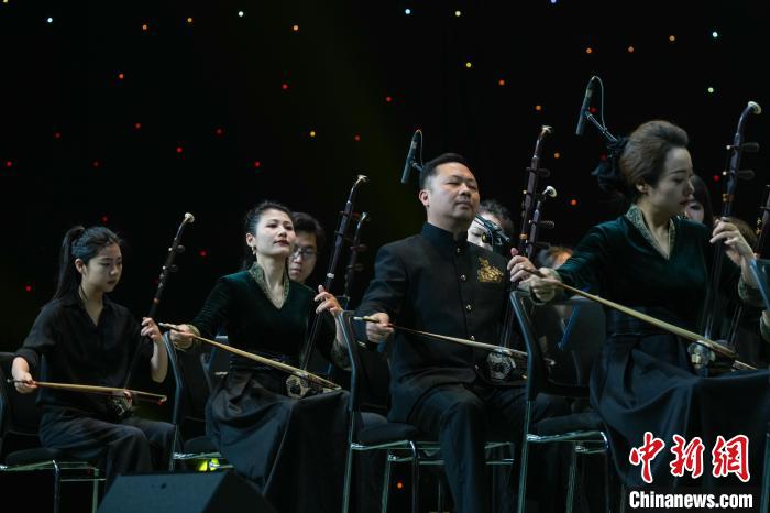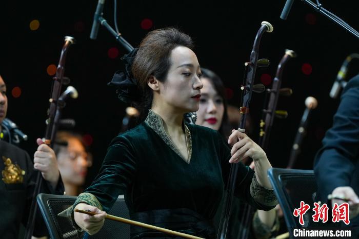 图为本次音乐会将编钟与民族管弦乐融合到一起进行表演。张倩龙 摄