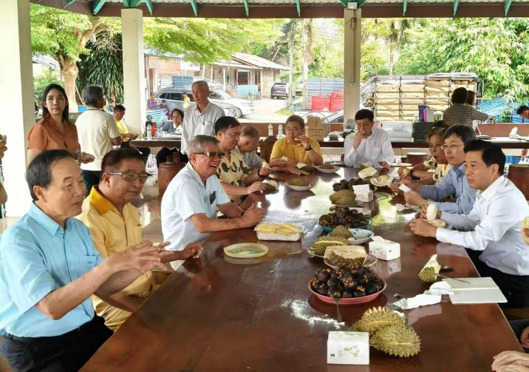 园内榴莲树硕果压枝,园农们开心地表示,今年榴莲大丰收,收购价格已涨至120泰铢/公斤,今天采摘的榴莲已全部被买走,通过铁路、公路、水运等多种方式运输,最快3天就能抵达中国,感谢中国政府特事特办促进泰榴莲通关顺畅。