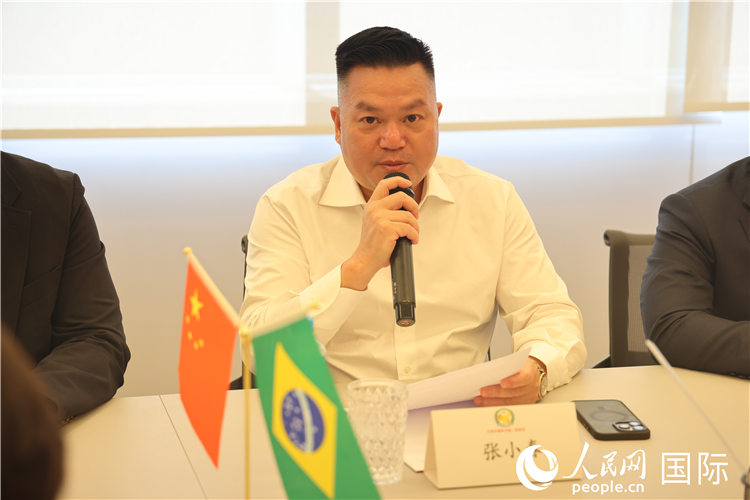 巴西中国和平统一促进会会长张小春在座谈会上致辞。 人民网记者 时元皓摄