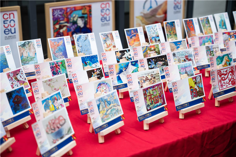 朱京在致辞中表示,在5月6日驻欧盟使团举办的庆祝中欧建交50周年招待会上,孩子们的明信片作品提前亮相,广受好评。青少年儿童是中国与欧盟友谊与合作的未来,期待今后看到中欧未来一代更多交流与往来。