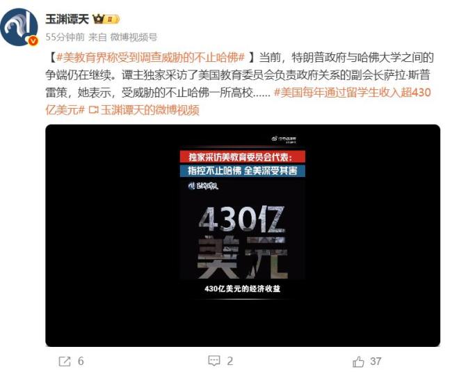特朗普政府与哈佛大学之间的争端仍在持续。美国教育委员会负责政府关系的副会长萨拉·斯普雷策表示,受影响的不仅限于哈佛大学,整个美国高等教育系统都受到了冲击。